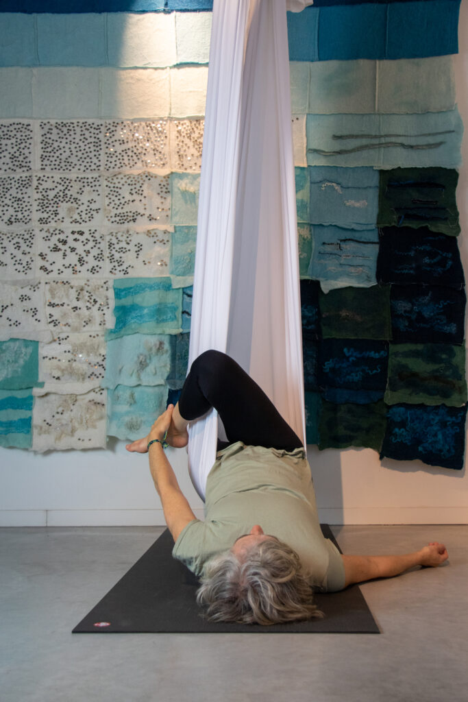 Vindt ontspanning en focus in deze yin yoga les waarbij we het doek en props  gebruiken om je lichaam te ondersteunen en je spieren te ontspannen waarbij de energiestroom in het fascia netwerk gestimuleerd wordt in poses die we langer vasthouden. We nemen de tijd om aanpassingen te vinden zodat de poses geschikt zijn voor jouw lichaam. Het doek hangt laag bij de grond.